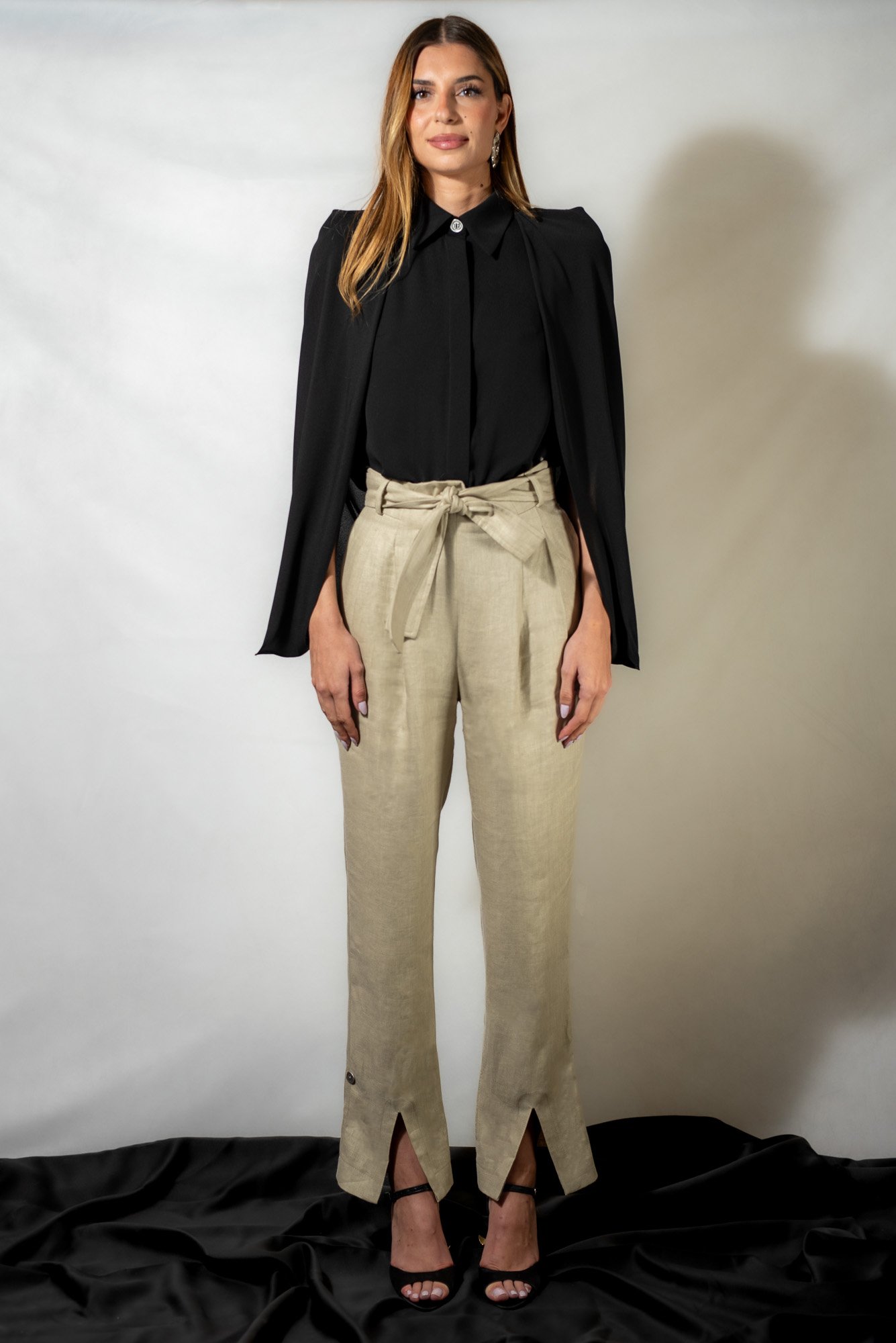 - Black silk cape shirt